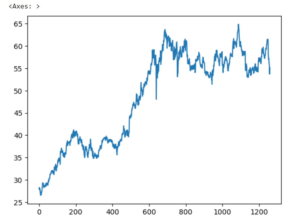 df['open'] 0 27.920 1 28.260 2 28.000 3 28.230 4 27.765 ... 1254 56.280 1255 55.900 1256 55.530 1257 53.685 1258 55.080 Name: open, Length: 1259, dtype: float64 [ ]
