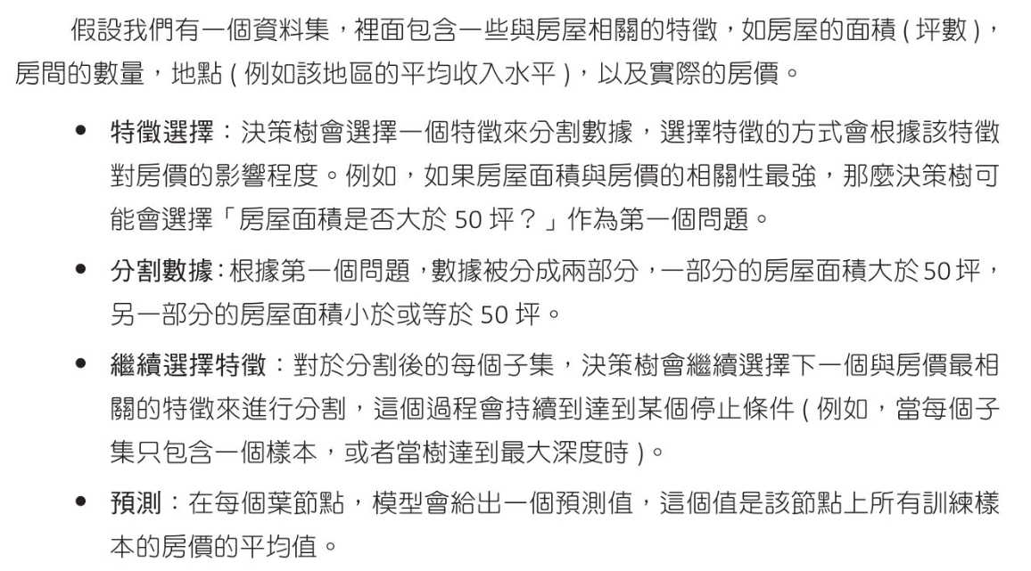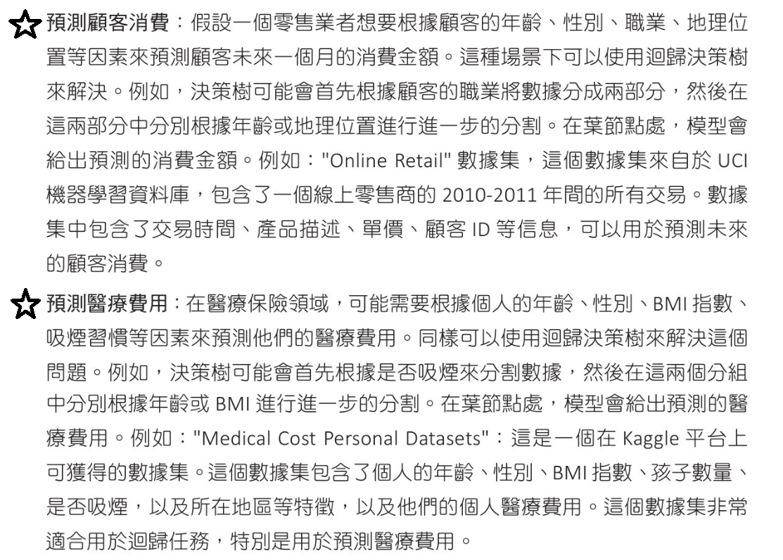 決策樹迴歸,可處理連續值(對比線性迴歸模型,更容易受到極端值的影響,並且可能在訓練數據不足下產生過度擬合)