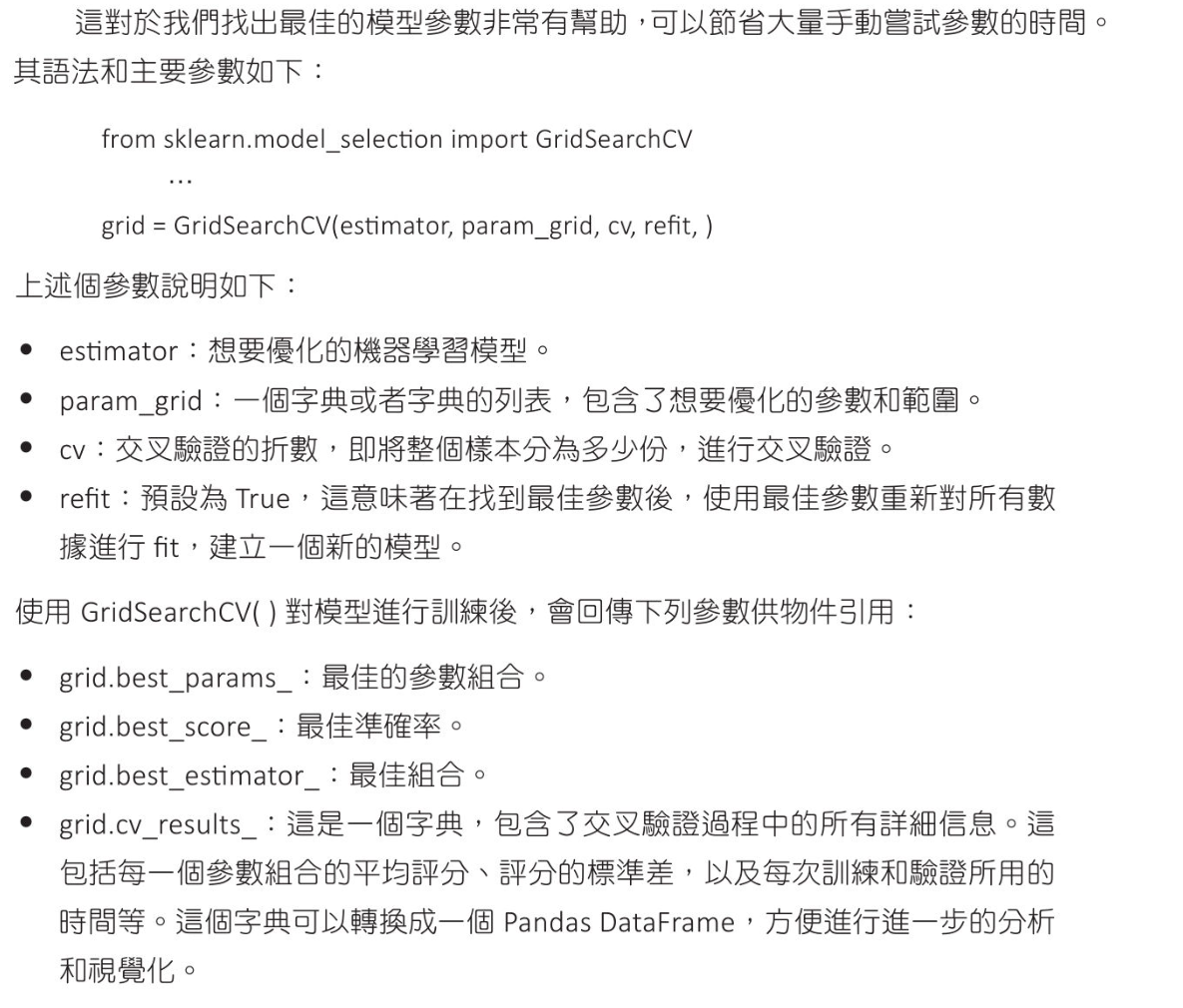 GridSearchCV() 可用於有系統地遍歷多種參數組合