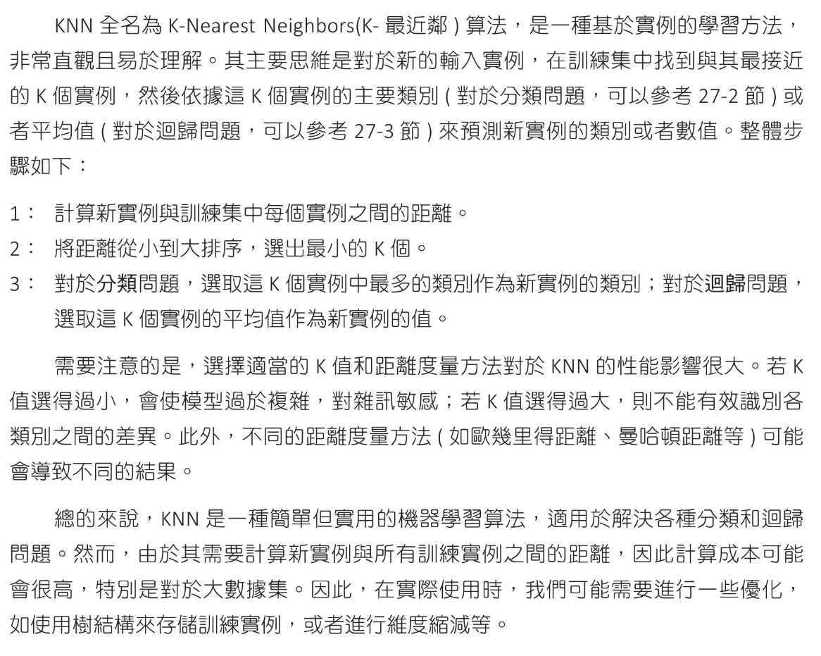 - 改進:調整 K 值,增加特徵,減少噪音(對數據進行清理和預處理),使用更複雜的模型