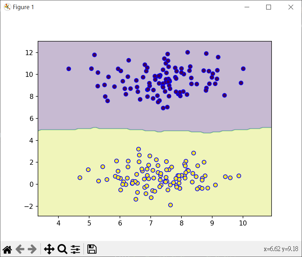 1 | # 用最相關2個特徵,設計邏輯迴歸模型 |