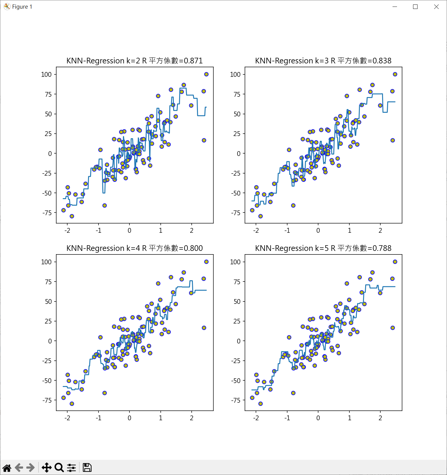 設定k值 2,3,4,5 同時計算 R平方判定係數,得到最好模型的k值
