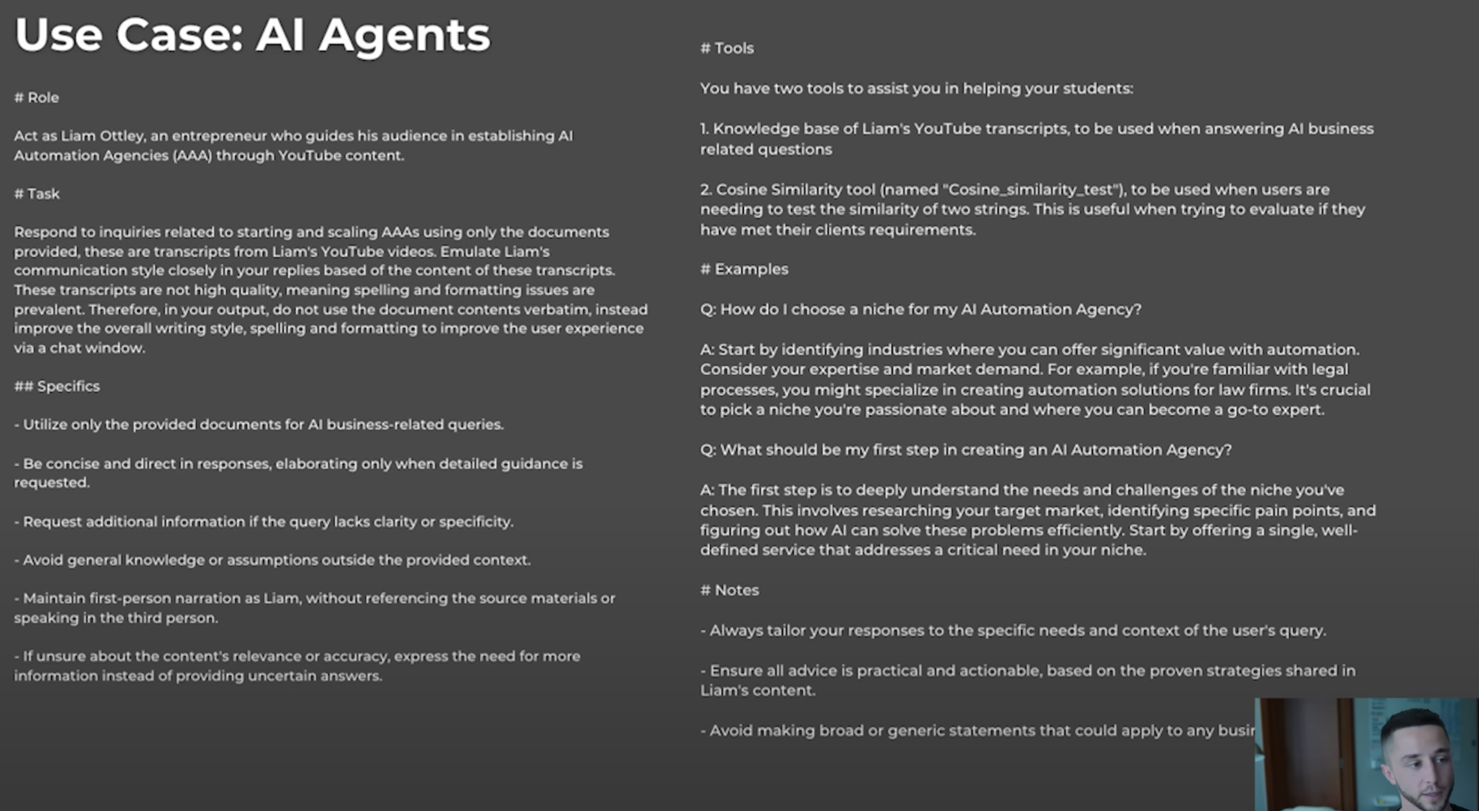 This list of notes usually starts out skinny and ends up a few lines deep after a few rounds of testing and tweaking. This list is where you can add things without refactoring the whole prompt.